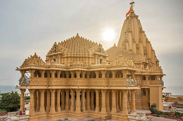 The New Somnath Temple, located on the sacred shores of Prabhas Patan in Gujarat, is a stunning symbol of faith and resilience. Built in Chalukya-style architecture, it stands as the first of the twelve Jyotirlingas dedicated to Lord Shiva. The temple’s grandeur, peaceful surroundings, and view of the Arabian Sea offer a truly divine and serene experience.